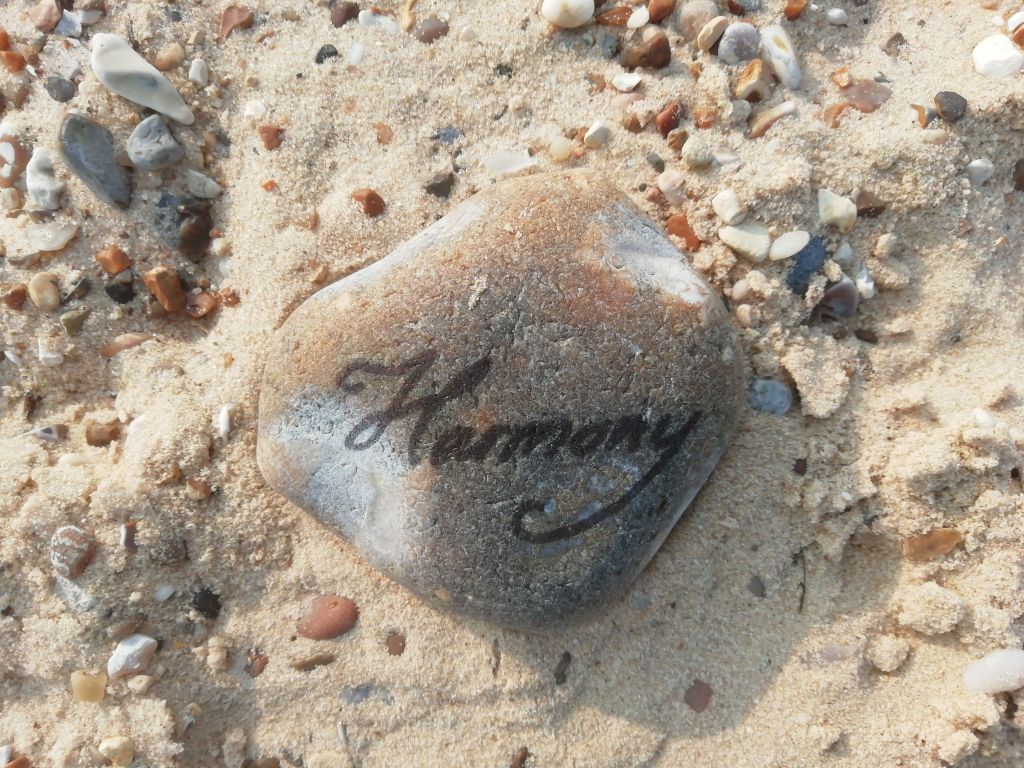 I was walking beside the sea yesterday. On the water’s edge was this stone with ‘harmony’ written on it.
