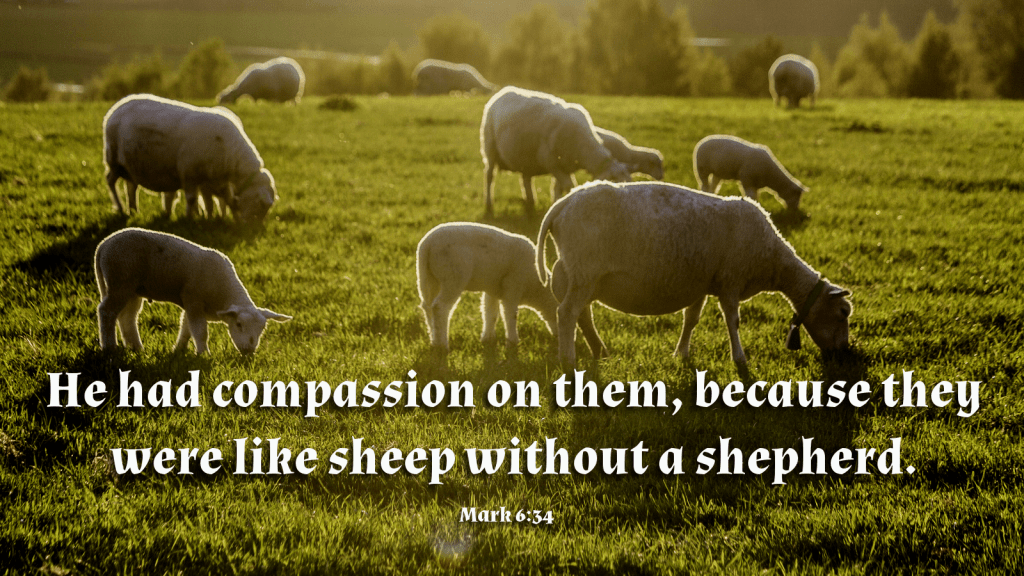 Musing on Jesus: ‘When he saw the crowds he had compassion on them, because they were harassed and helpless like sheep without a shepherd.’ Their problems became his problems.