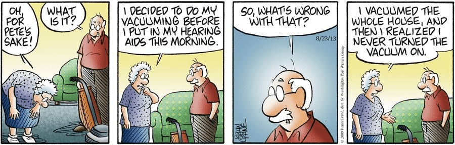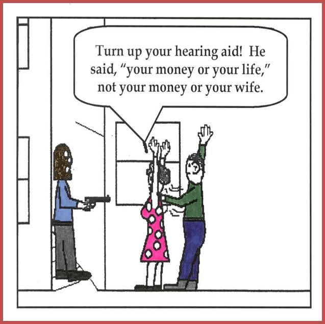 Recently he’s purchased hearing aids. He doesn’t have so much money in his bank account or an excuse for not hearing his wife Jane; he does have much improved hearing.