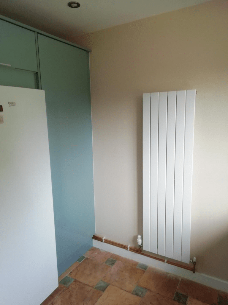 Last Part: Several people have asked about our new kitchen recently. Kevin the plumber has been round this morning, fitting the radiator in our utility room. – the last part in our lovely new kitchen….