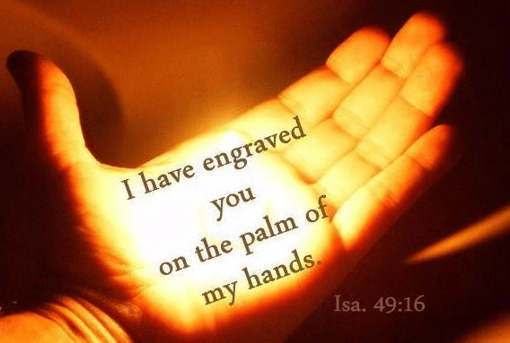 Musing… Words from the ancient prophet: ‘Can a mother forget the baby at her breast…? Though she may forget, I will not forget you! See, I have engraved you on the palms of my hands…’
