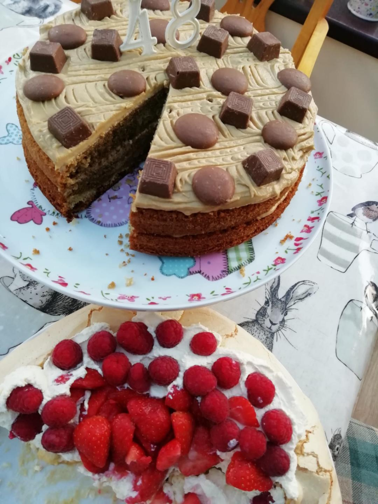 …Our family came round for dinner. Roast beef and Yorkshire pudding was well received… Rachel’s fruit pavlova and coffee cake was consumed with enjoyment and enthusiasm!