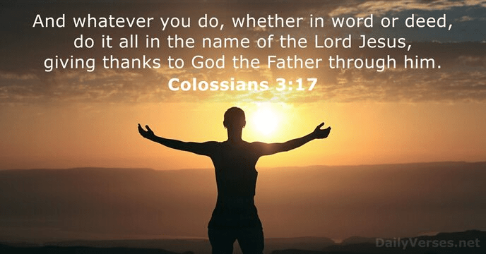 …St Paul’s words: ‘And whatever you do, whether in word or deed, do it all in the name of the Lord Jesus, giving thanks to God the Father through him.’ I’m thankful.