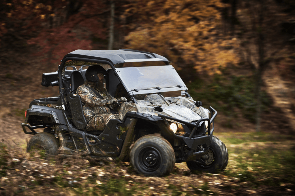 ‘Side by side’ means: ‘in a line next to each other, close together and facing the same direction.’ A ‘side-by-side vehicle’ (SSV) is ‘an off-road vehicle with at least two side-by-side seats…’.