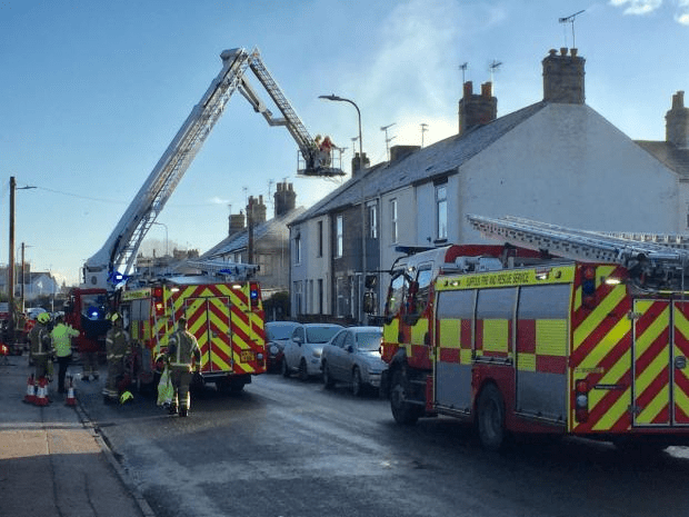 ‘The fire spread to at least three rooves along the row of terraced houses but was stopped from taking hold. One patient, an adult man, was transported to the James Paget Hospital for treatment for minor burns.’