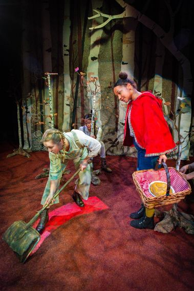 Yesterday we saw ‘Little Red’, a Christmas family show telling the story of Little Red Riding Hood. In yesterday’s version Little Red is given a pie to take through the woods to Grandma. Her mother, a woodcutter, tells to wear her red coat, speak to no-one and keep to the path. Mr Wolf persuades her to leave the path; she gets lost…