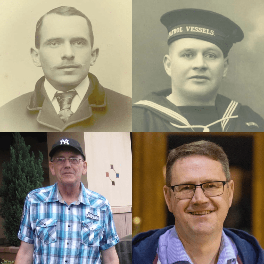 My friend Jon put this picture on Facebook: ‘Every now and again I lose a few hours “researching and developing” my ancestral knowledge. This is a photo of my great grandfather, grandfather, father and me!’