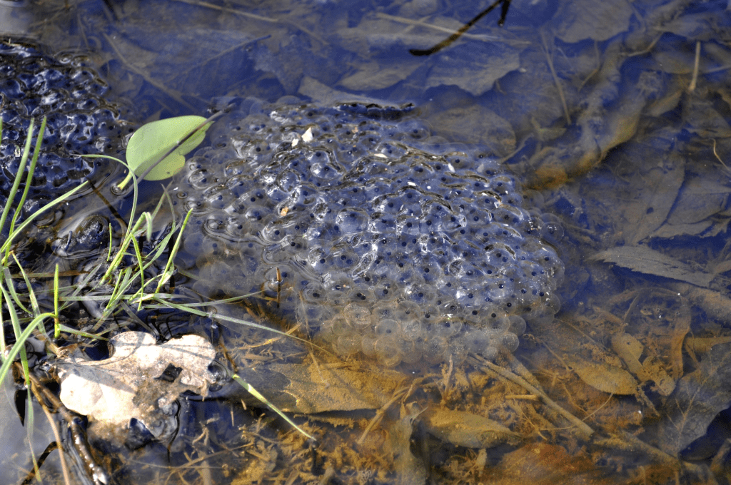 The frogs fresh start – frogspawn – the next generation of frogs; for the newts – a tasty meal…