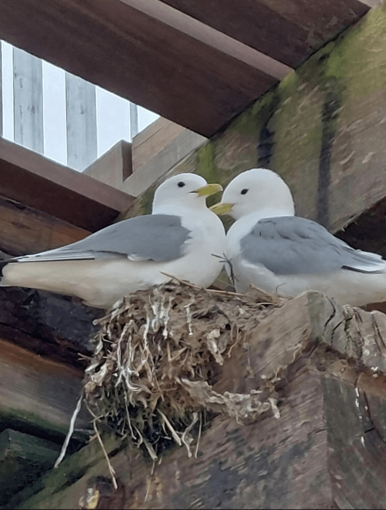The kittiwakes are back. Having migrated for the winter they’ve returned to nest on the Claremont Pier. Yesterday they were claiming their nesting sites… They’re always so noisy! They may be arguing… perhaps they’re just engaged in animated debate.
