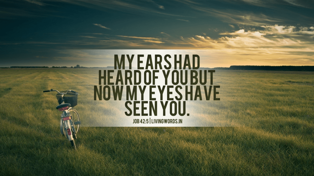 See God each day. This morning I finished reading ‘Job’… Having suffered terribly, asked unanswered questions, Job’s confronted by God… Job says ‘my ears have heard of you, but now my eyes have seen you…’ Seeing my God in each day is enough.