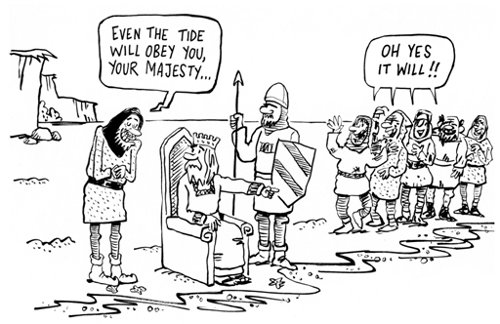 I thought I knew about Canute… the 11th century king who sat on the seashore on his throne, crown on his head, commanding the tide to stop. Canute got wet and looked foolish…