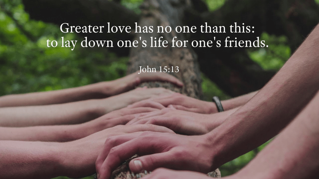 Jesus said: ‘Greater love has no-one than this, that he lay down his life for his friends.’ Jack and Joe illustrate this. I’m called to follow Jesus’ example.