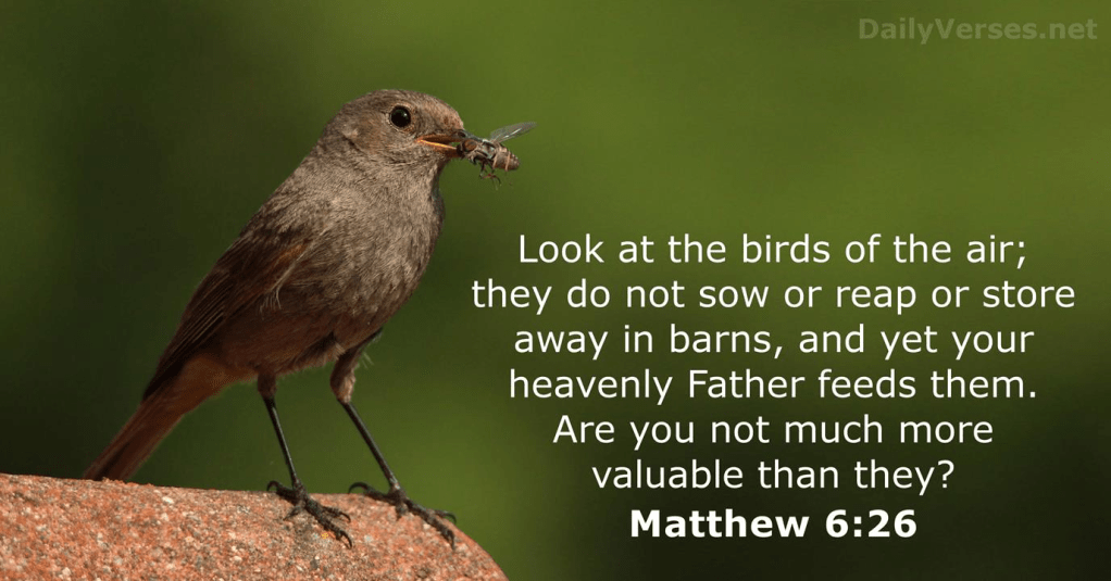 And that was my ‘A-ha’ moment… Jesus words: ‘Look at the birds of the air; they do not sow or reap or store away in barns, and yet your heavenly Father feeds them. Are you not much more valuable than they?’