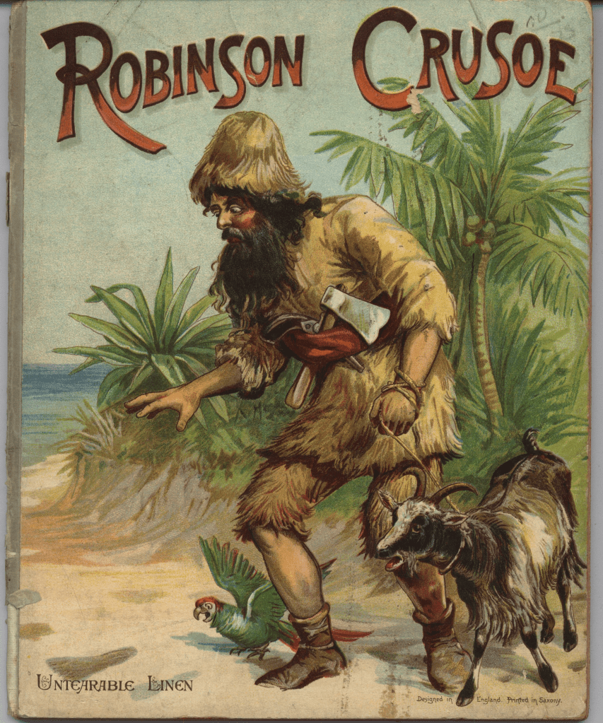 Robinson Crusoe didn’t have a red hat. He had ‘a great high shapeless cap made of goatskin with a flap hanging down behind.’ Alone on his desert island for some years he mused: