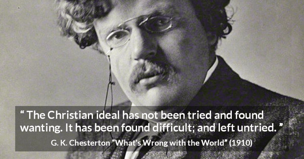 G.K. Chesterton famously said: ‘The Christian ideal has not been tried and found wanting. It has been found difficult; and left untried.’