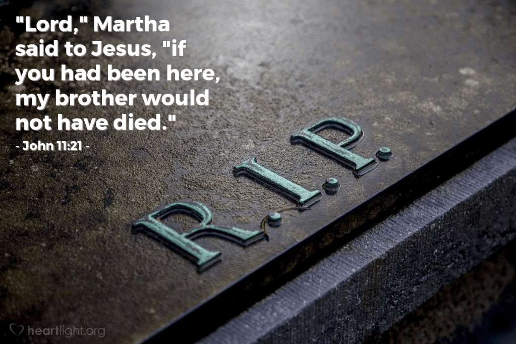 This morning I read the story of Jesus and his friend Lazarus… Lazarus was ill. His sisters, Mary and Martha, send a message to Jesus, ‘Come quick!’ Jesus doesn’t. Lazarus dies.