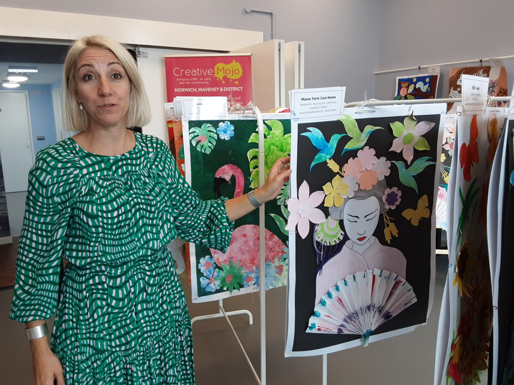 Foteini does art with folk at our ‘Dementia Café’, and in care homes across the county. Her publicity material states ‘…everyone, including individuals with severe learning disabilities, can enjoy being creative… helping people with dementia regain their confidence… individuals who may have lost their previous confidence in being creative can join in, regain this confidence, and feel able to express themselves once again.’