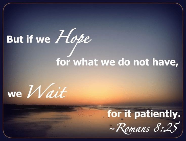 This morning I read: ‘If we hope for what we do not yet see, we wait for it patiently.’
