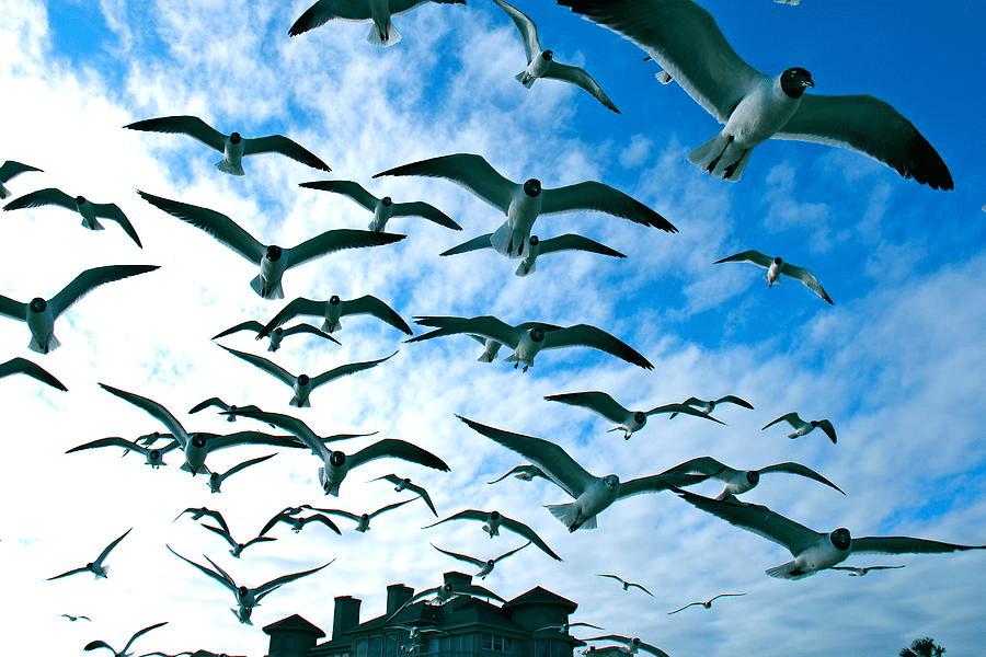 …I walked along the coastal path. I was aware of a huge, noisy flock of seagulls flying above me. I looked again. Their attention was focused on a gent who was walking behind me.