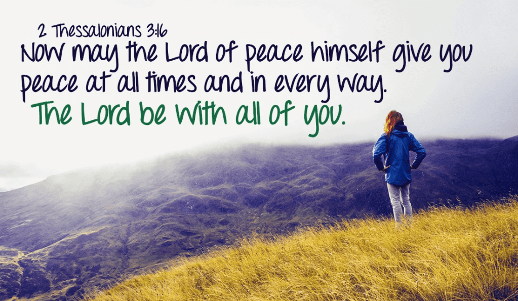Remembering the source of peace and the giver of peace: May the Lord of peace himself give you… Peace at all times and in every way.