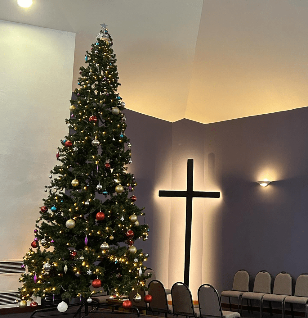 Next to our church Christmas tree is the cross. Yesterday I read Peter’s words: ‘He bore our sins in his body on the tree…’