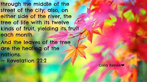 Musing… The Bible starts in Genesis with creation; God puts the tree of life in the Garden of Eden. It ends in Revelation with redemption, healing and reconciliation; the tree of life is in heaven.
