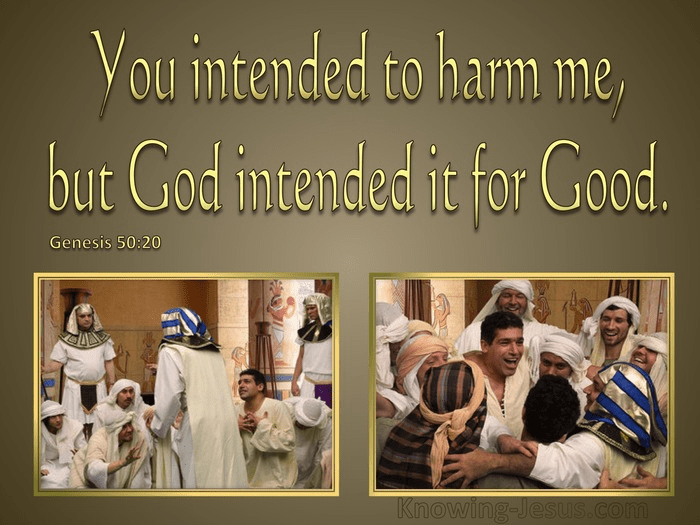 Then through bereavement, lies, injustice, slavery and famine there’s final resolution. Prime minister Joseph welcomes his family to his Egyptian home, and says ‘You intended to harm me, but God intended it for good.’
