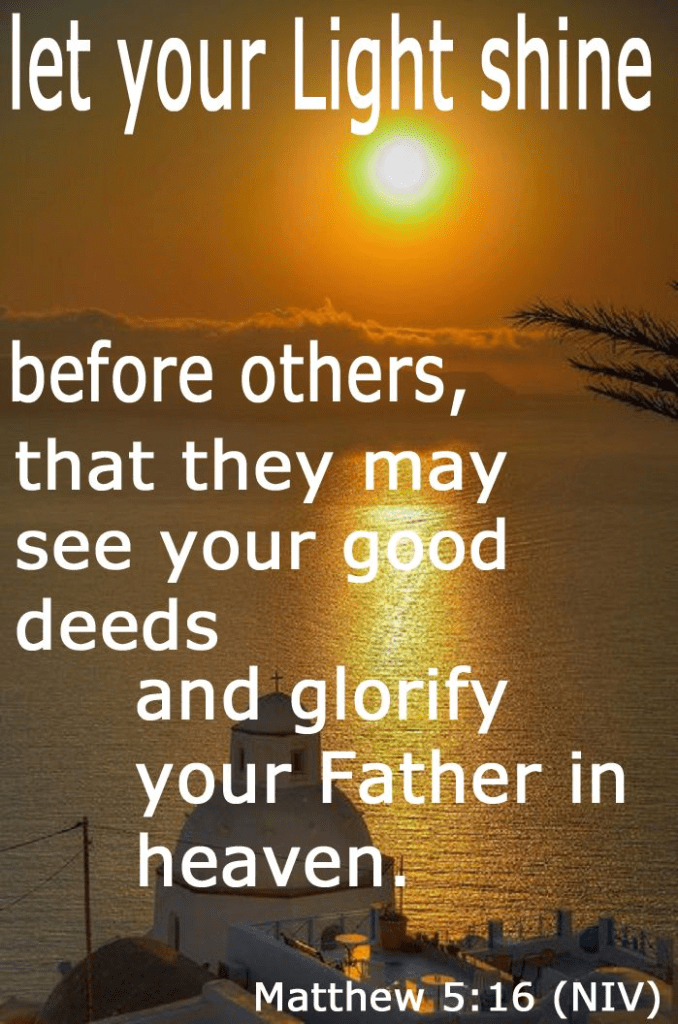 Our Lent course this morning reminded of Jesus’ words: ‘Let your light shine before others…’