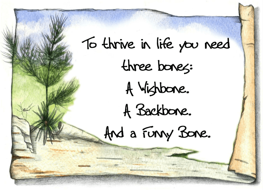I love the meme that states that you need three bones to thrive in life: a wishbone, a backbone, and a funny bone. It’s so true! 🙂