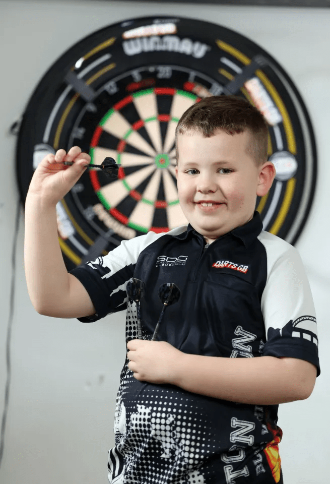 Kai started throwing darts at 18 months… he’s 4ft tall, so needs a step to collect his darts from the board… he needs permission to play in adult matches held in pubs… he won ‘The Wheatsheaf Open’, Sunderland, beating twenty-eight adults, including county players, winning £120!