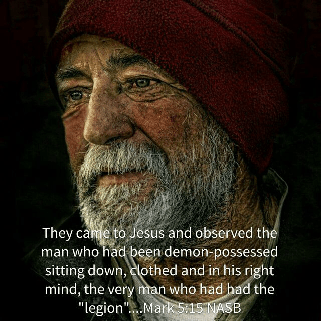 In Mark’s account of the narrative, after Jesus has calmed the storm He gets out of the boat and encounters Legion, a troubled, demon-possessed man living alone in a cemetery. Jesus cares and heals his significant mental and spiritual problems. Jesus calms the storm.