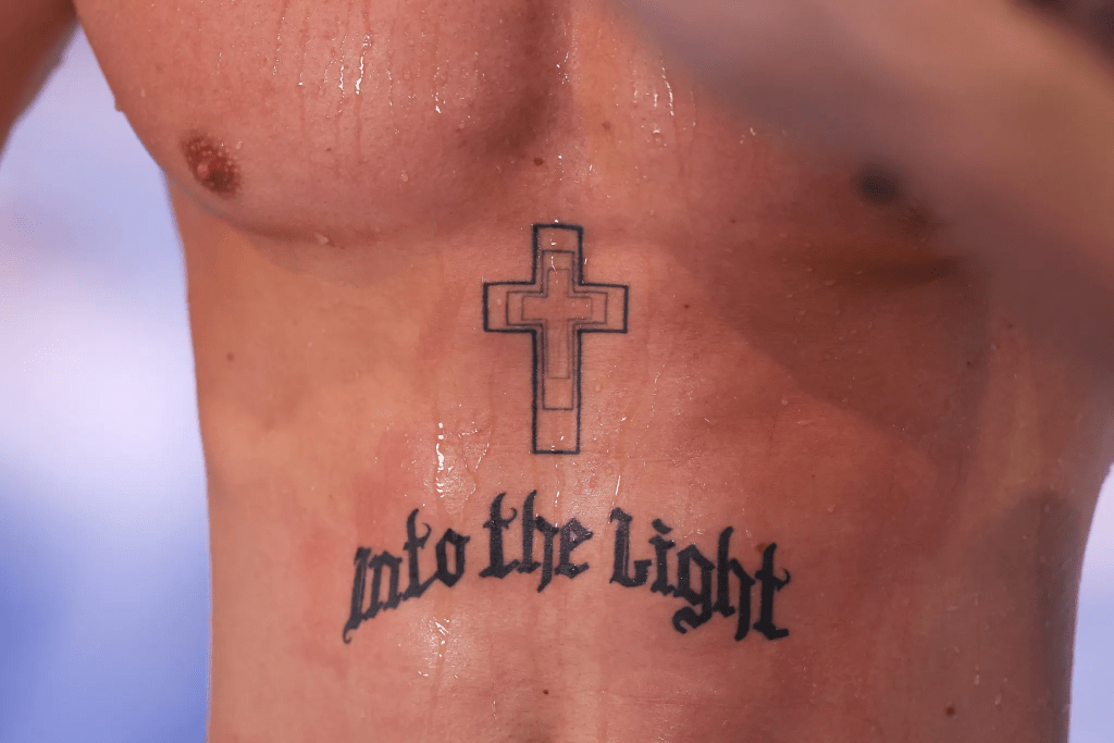 Yesterday evening we watched swimming world record holder Adam Peaty win an Olympic silver medal. We saw his wife, young son and mother in the crowd… and couldn’t miss his tattoo of a cross and ‘Into the light’ written below it.