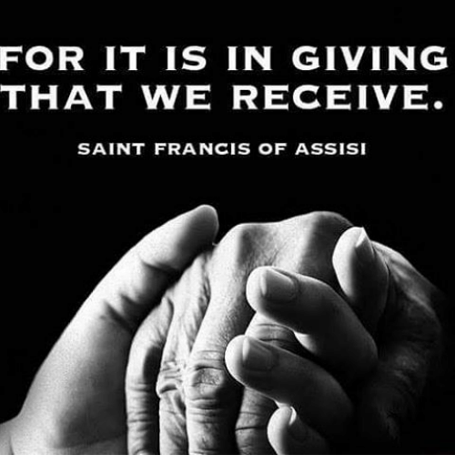 This morning I’m musing on the phrase in the prayer of St Francis ‘it is in giving that we receive’, and the gratitude that starts, not with our getting or receiving, but with our generous giving.
