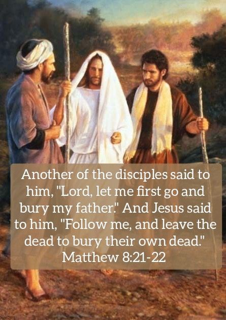 …When a disciple asks Jesus if he could first bury his Father before following him, Jesus replies: ‘Follow me and let the dead bury their own dead.’ Desirable but difficult?