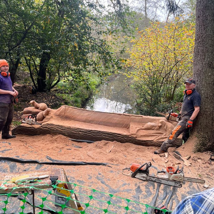 Their November News arrived yesterday, reporting on a stunning chainsaw sculpture. An ash tree was hauled out of a dyke, and ‘Matt Darge’ transformed it into a seat with a pair of otters on the end – as they’re often seen in the water nearby. Matt could see potential in an old tree trunk and turn it into something beautiful… totally unpredictable…