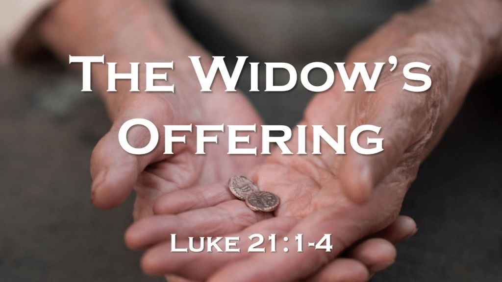 Jesus does none of these. Spotting a poor widow giving two very small copper coins he says, ‘…this widow has given the largest offering today. All these others made offerings they’ll never miss; she gave extravagantly what she couldn’t afford…’ (The Message)