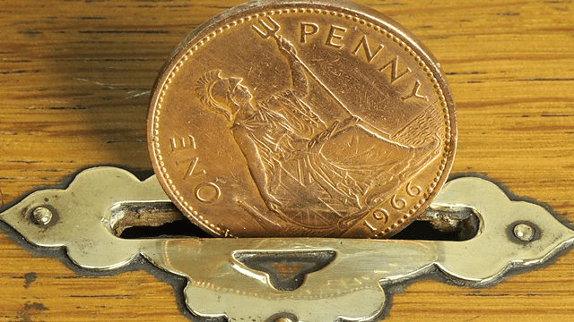 From around 1890 penny-in-the-slot machines were used to sell postcards, chocolate, cigarettes, domestic gas… A penny’s inserted, the penny drops, the goods are supplied…