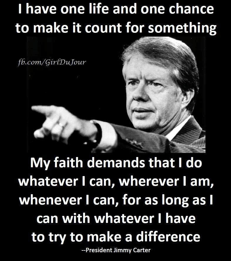 Carter said: ‘I have one life and one chance to make it count for something… my faith demands that I do whatever I can, wherever I am, whenever I can, for as long as I can with whatever I have to try to make a difference.’