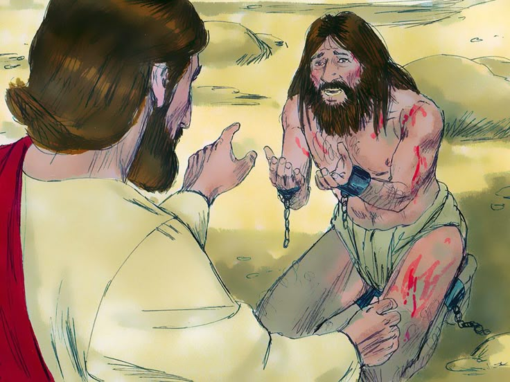 At church yesterday Lou told the story of the mad man in the cemetery. Violent and abusive he’s totally out of control. Attempts to contain and restrain him have failed. He’s seriously self-harmed, rejected by his community; no-one has an answer.