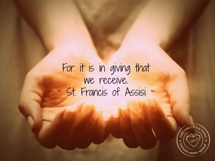Giving: My experience suggests that getting doesn’t make us happy. The more we get, the more we want. However, those who lift their eyes beyond their own needs to the needs of others… who are generous in sharing their money, possessions, time and emotions … are more content.