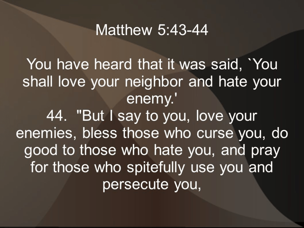‘You have heard that it was said, ‘Love your neighbour and hate your enemy.’ But I tell you, love your enemies and pray for those who persecute you.’ The Impossible Dream comes through unselective, inclusive love that extends beyond our petty preferences… giving and serving, with no expectation or reward or return.