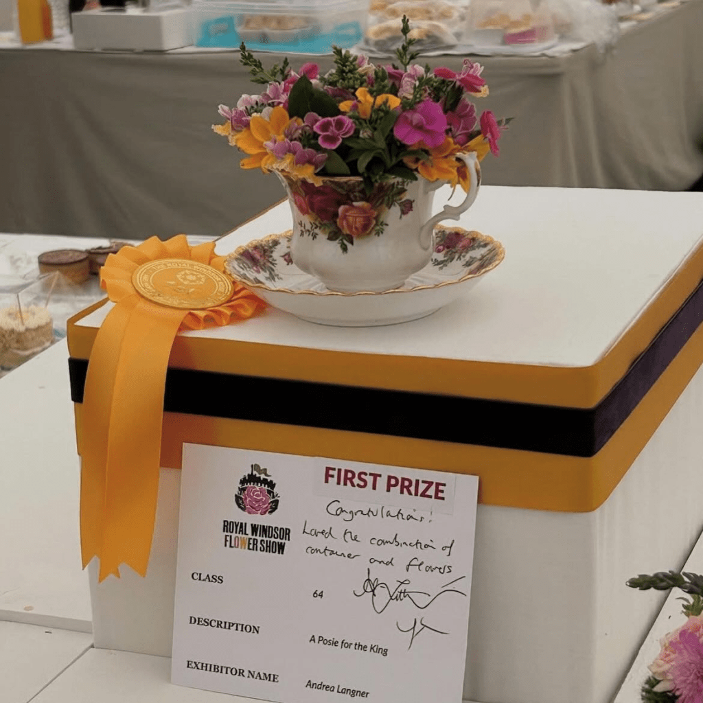 ‘Huge congratulations to Andrea Langner who won The Posy for His Majesty The King at the 118th Royal Windsor Flower Show. This is an historic event and the posy is take to sit on The King’s breakfast table the morning following the Royal Windsor Flower Show.’