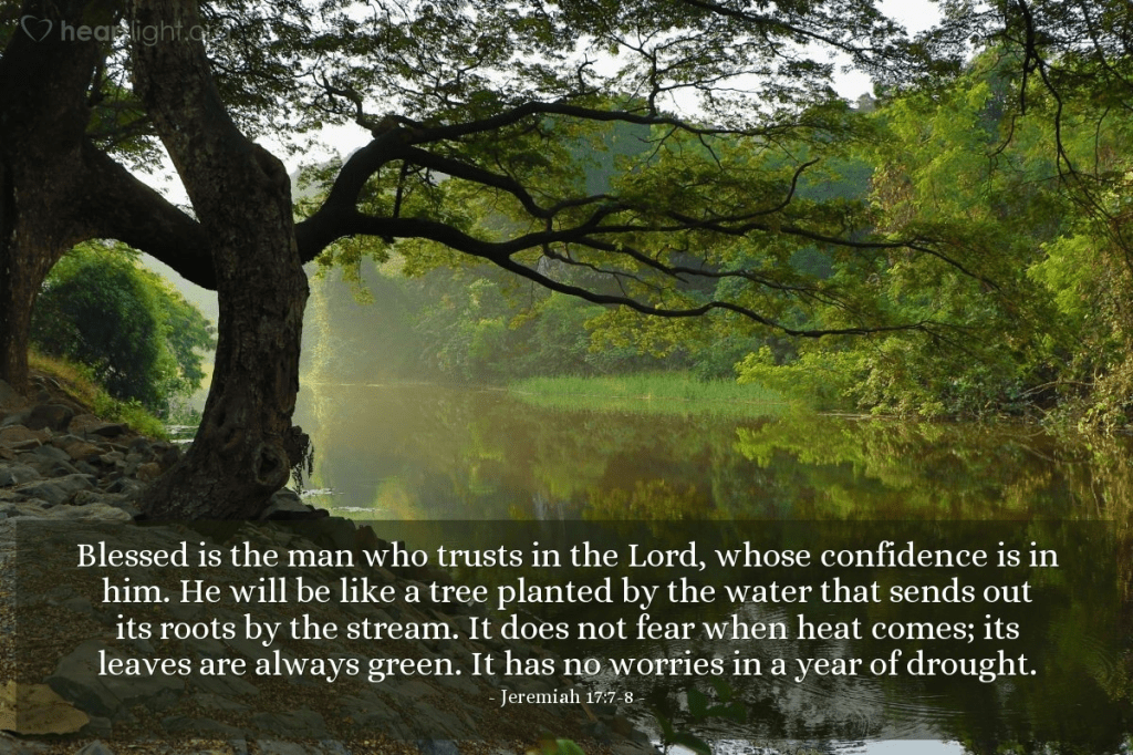 The picture of Jesus coming to find the lost is a familiar one. The picture that’s come to me several times this week is that of the tree planted by the river. Having come to the strong and kind Jesus I stay there. It’s not just about running to Jesus when things are tough. I plant myself beside the river of refreshing, living water. My roots go deeper. The river provides constant growth, security and life.