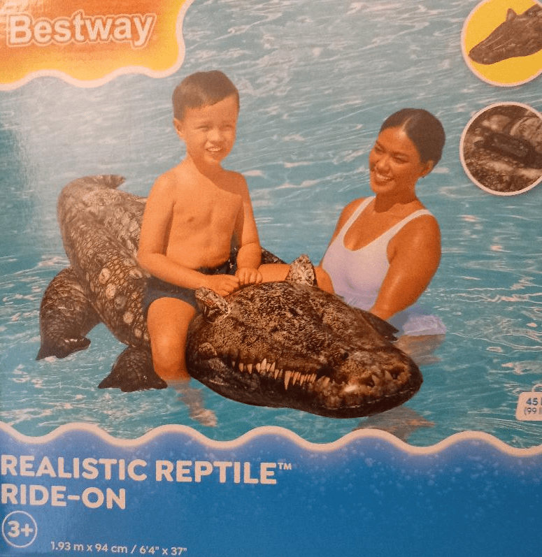 He explained… One night, having consumed a little too much alcohol he’d gone on line and made this purchase… All that remains of that night? An inflatable alligator. And the make? ‘Bestway!’
