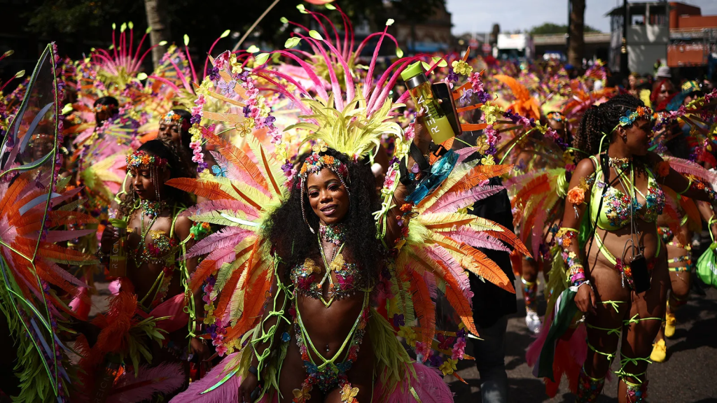 …The Notting Hill Carnival, returns to West London for its 57th year. More than two million people will follow the three-mile parade with dancing, calypso, and steel bands… diversity, colour and celebration. Participators have been planning for weeks; many observers will get caught up in the carnival and become participators.