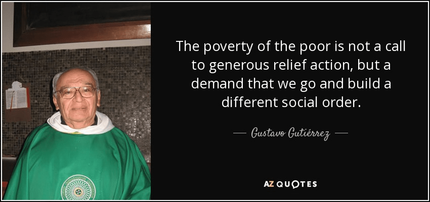 Yesterday I read about the Peruvian theologian and Dominican priest Gustavo Gutiérrez who spoke out against the social and economic injustice that he believed to be responsible for poverty in Latin America.