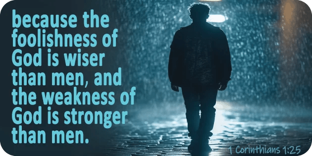 Attempting to resolve the issue he says, ‘For the foolishness of God is wiser than human wisdom, and the weakness of God is stronger than human strength.’