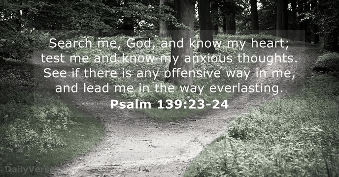 Last night, in our church home group, we read: ‘Search me, God, and know my heart; test me and know my anxious thoughts. See if there is any offensive way in me, and lead me in the way everlasting.’ Am I wonderful? I’m content to leave that assessment to my God.