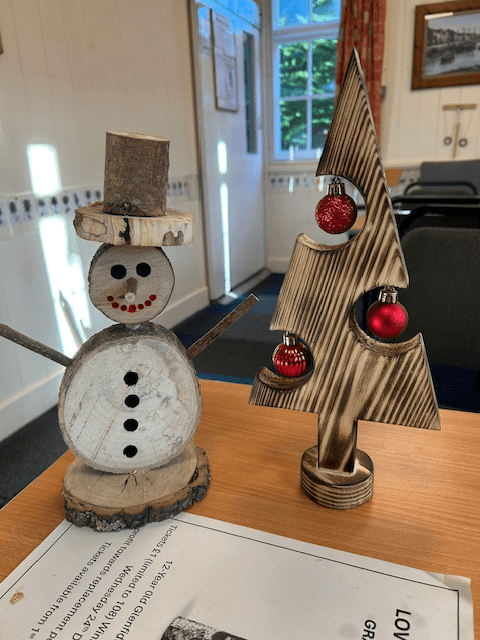 Christmas Decorations… The gents at Men’s Shed have been making decorations. Orders have been placed by families and friends!