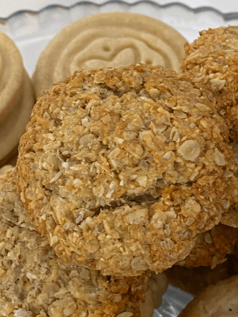 Yesterday were messaged by our French relations. ‘Auntie Rachel’s cookies are on the tea room’s menu today’. Rachel’s ‘Anzac cookies’ are appreciated in Lowestoft. She’d given the recipe to niece-in-law Julie. They’re now sold in Julie’s ‘Salon de Thé’ in suburban Paris.